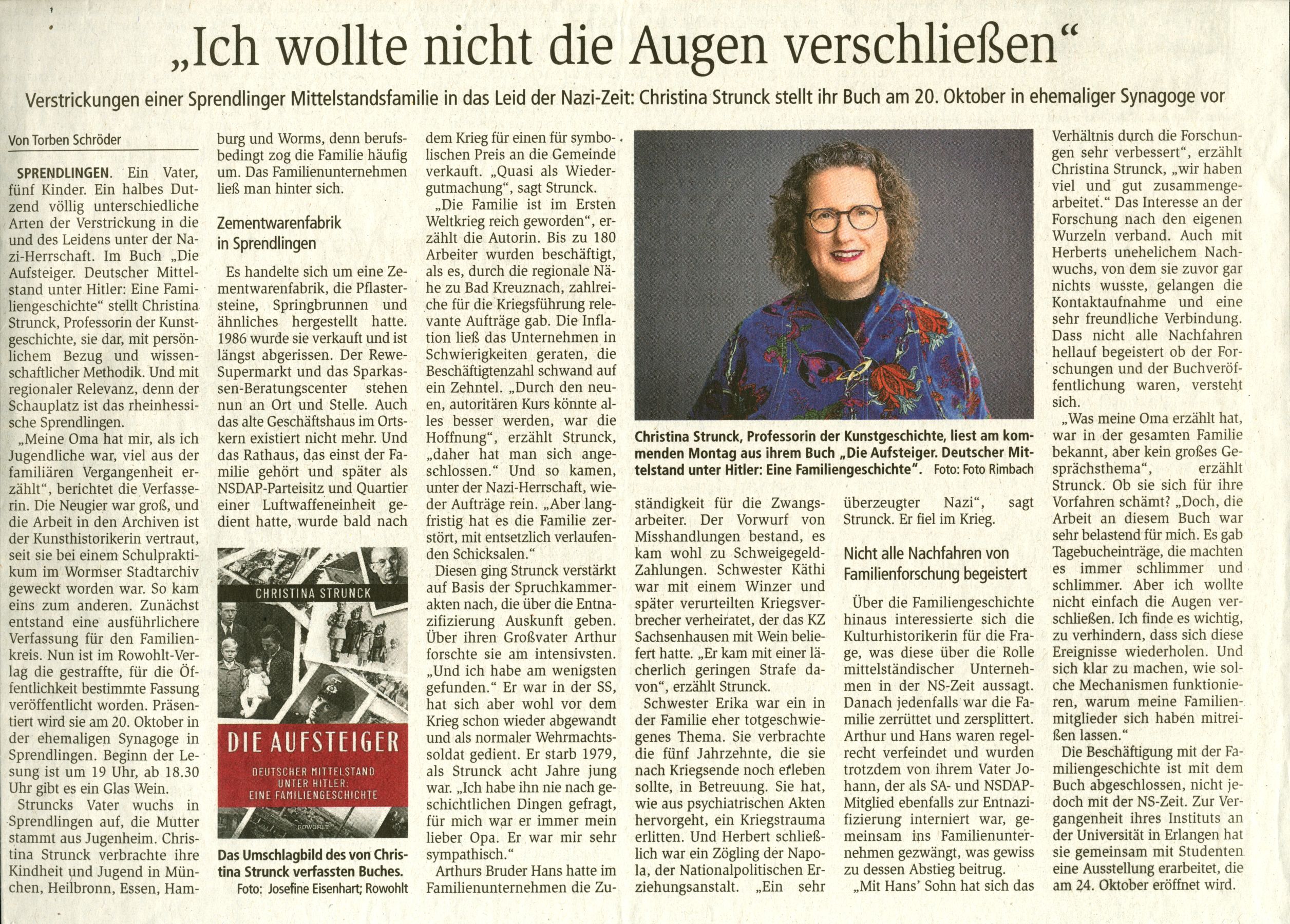 - Lesungen aus Die Aufsteiger im Rahmen der Jubiläumsfeierlichkeiten 200 Jahre ehem. Synagoge in Sprendlingen/ Rhh. am 20.10. und 9.11.2025; zugehörige Buchbesprechung aus der Allgemeinen Zeitung, 18.10.2025
